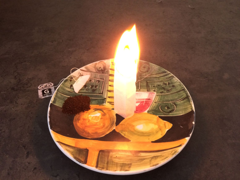 - 1 st porslinstallrik (eller annan svårantändlig yta)